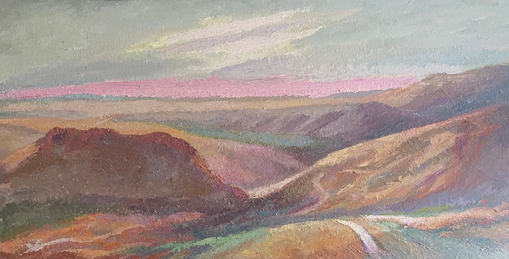 View From East Mountain. Oil on Board. 12″ x 20″. $600