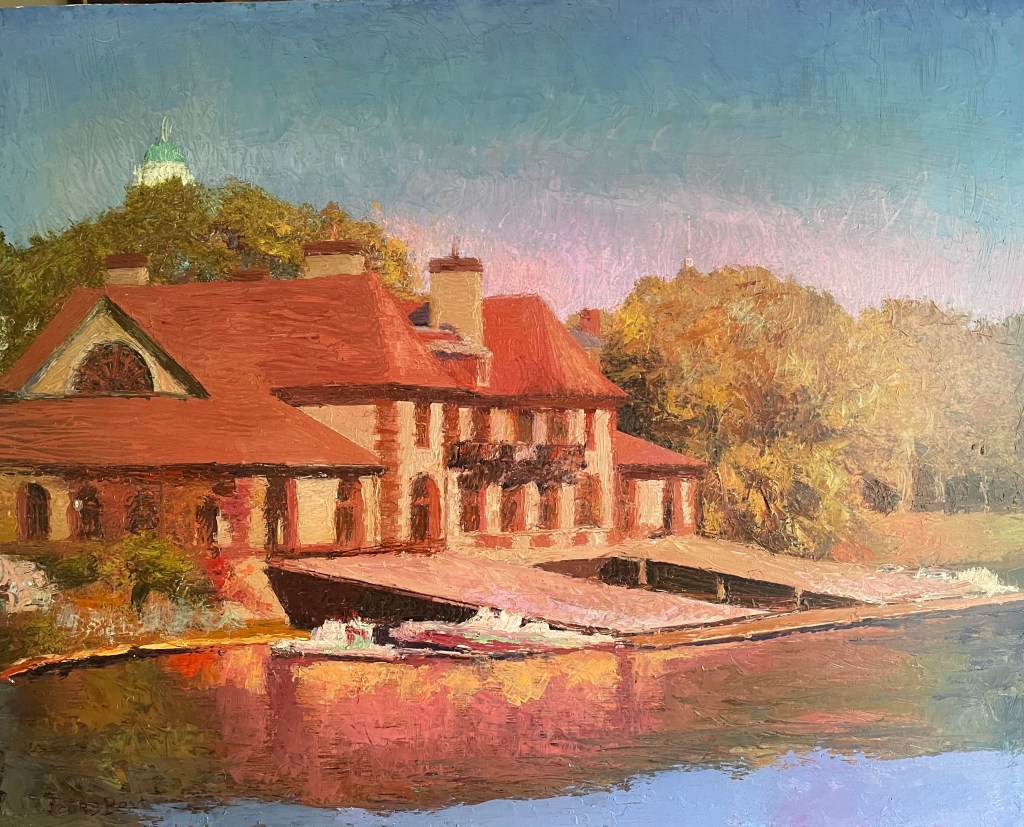 Harvard Boathouse. Oil on Board. 16″ x 20″. $960