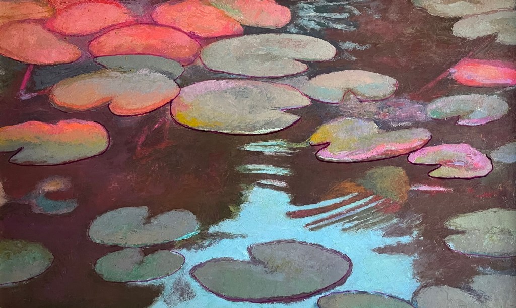 Floating Lily Pads Oil on Board. 18″ x 30″. $1,600