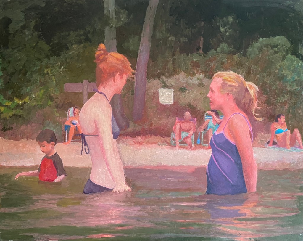 Young Women In Walden Pond. Oil on board. 24″ x 30″
