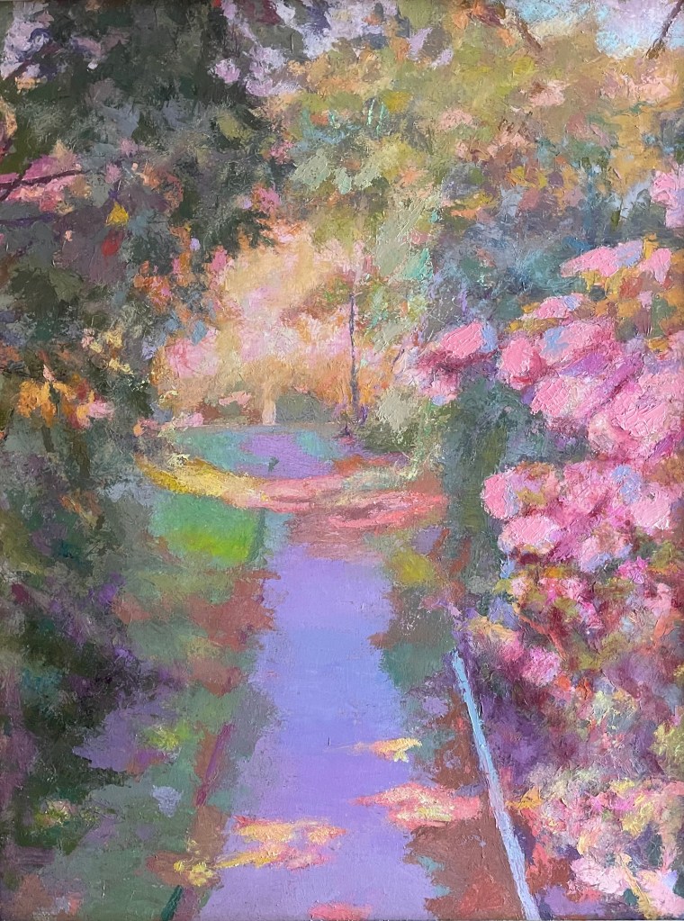 Flowered Path. Oil on Board. 18″ x 24″. $1,300