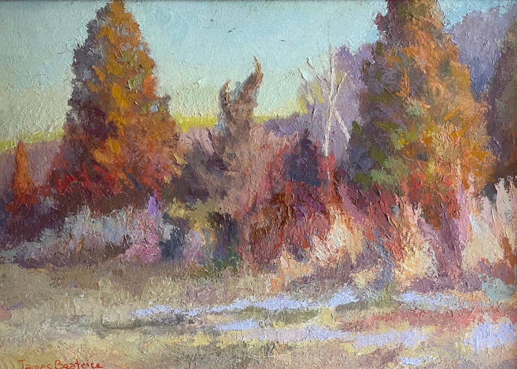 Cedars In The Snow. Oil on Board. 16″ x 20″. $960