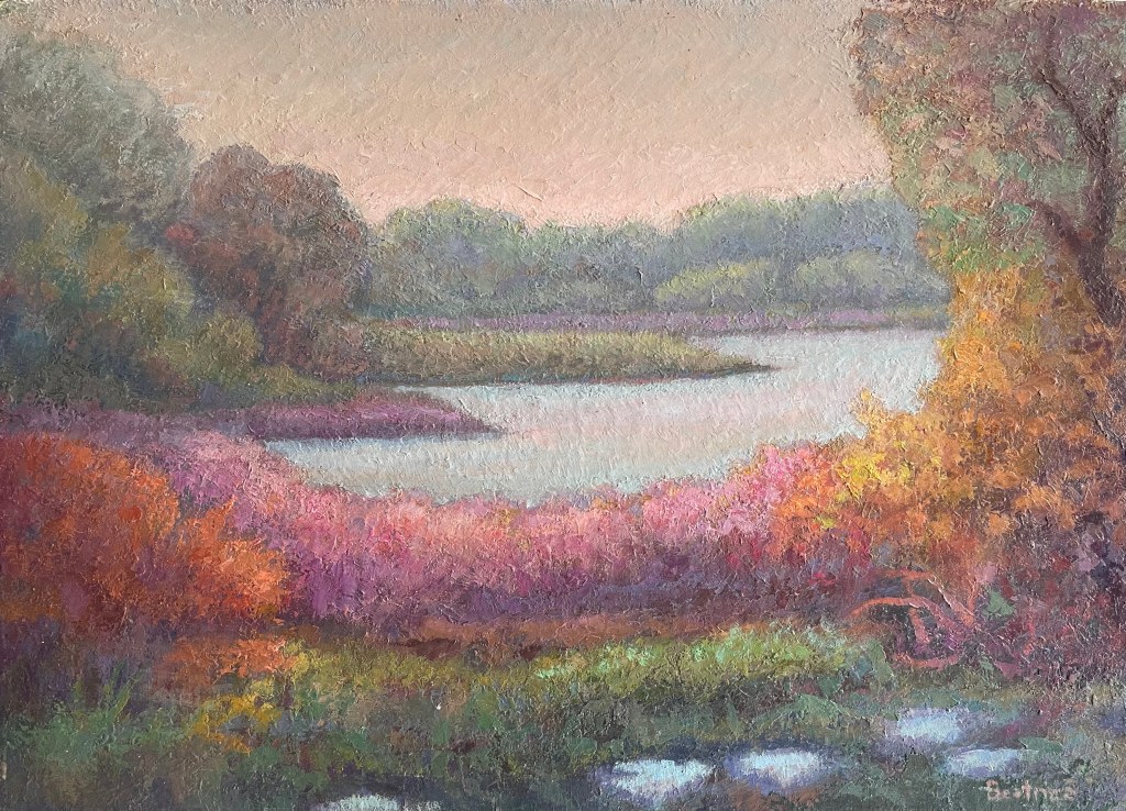 Wayland Cove With Loosestrife. Oil on Board. 16″ x 20″. $960
