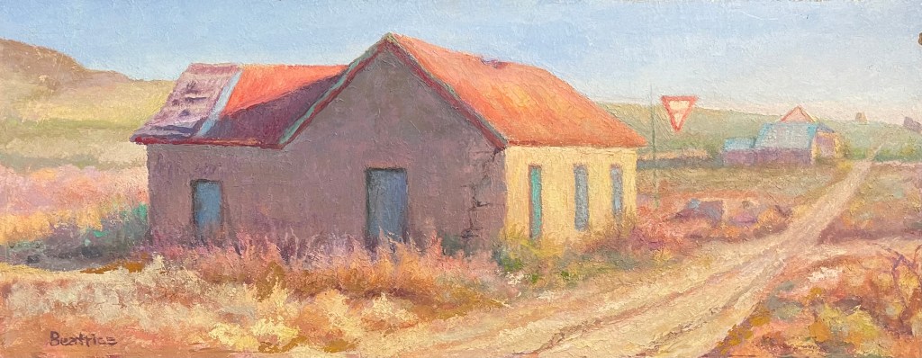 Abandoned Depot In New Mexico. Oil on Board. 12″ x 24″. $900