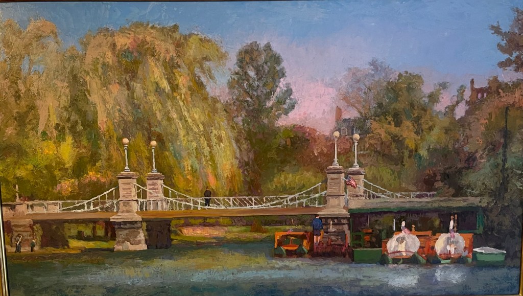 Swan Boats And Bridge At Boston Public Gardens. Oil on Board. 20″ x 36″ soldManchester Shoreline. Oil on Board. 16″ x 20″ $960Path To The Glade. Oil On Board. 24″ x 30″. $2,200Alleyway In Prague. Oil on Board. 14″ x 18″. $750 Winter Trees On The Charles River. 18″ x 24″. $1,300Christmas Eve. Oil on Board. 20″ x 24″. SoldOcean Sunset. Oil on Board. 16″ x 20″. $960In The Bardo. Oil on Board. 18″ x 24″. $1,300Trees On Blood River. Oil on Board. 20″ x 24″. $1,500Autumn Day At Mt Auburn Cemetery. Oil on Board. 16″ x 20″. $960Boathouse On The Charles River. Oil on Board 12″ x 18″. $700Swan Boat Bridge Oil on Board 12″ x 24″. Sold