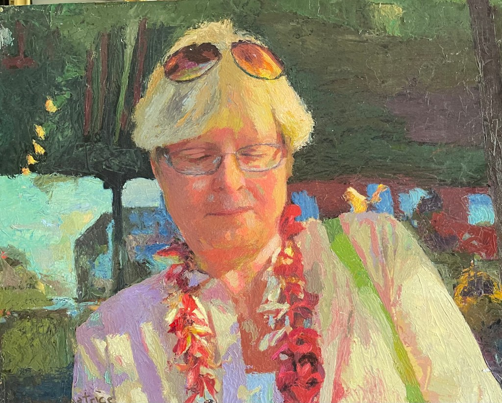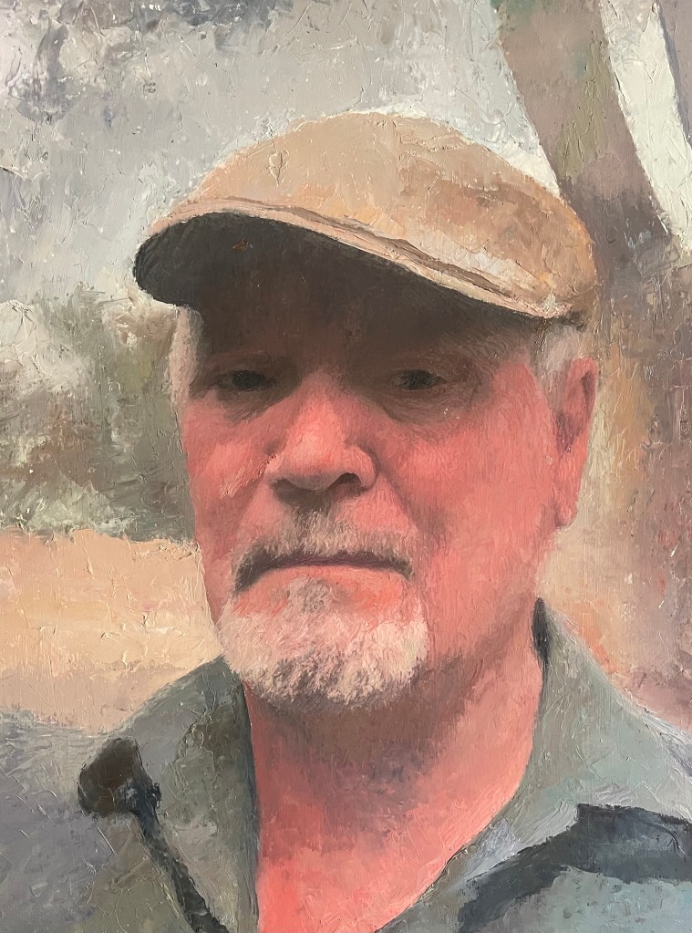 Outdoor Self Portrait Oil on Board. 16″ x 20″. $960