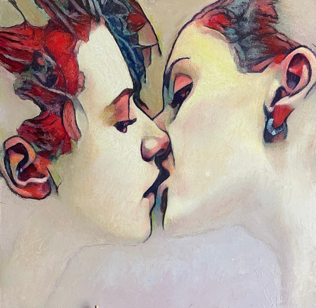 Kiss. Oil on Board. 24″ x 24″. $1,800